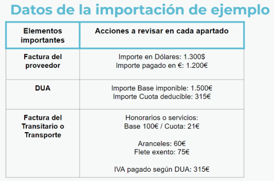 En nuestro ejemplo, la cuota de IVA del DUA asciende a 315 €, por tanto: