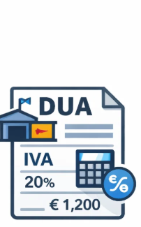 La base del DUA asciende a 1.500 € y la cuota de IVA a 315 €.