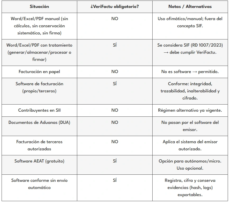 El sistema VeriFactu afecta a la mayoría de los empresarios y profesionales que emiten facturas utilizando sistemas informáticos de facturación. Sin embargo, están exentos de su aplicación los siguientes sujetos